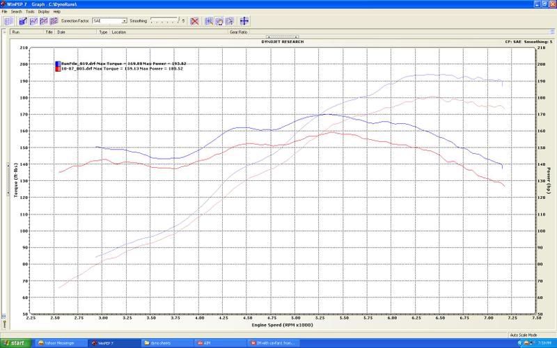 yea yea i know...well heres the dyno sheet of my new tune compared to the old tune from the last dyno day i had...ill have it retuned and dynoed as soon as i get the header back...but i think its turning out pretty good so far