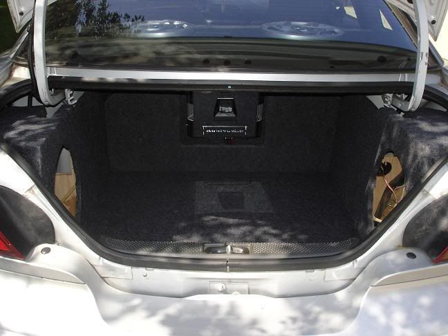 i guess you could call this my "teaser", since i still need to throw the subs in and wire 'em up... trunk still needs a few final touches but it's just about done! here you go!